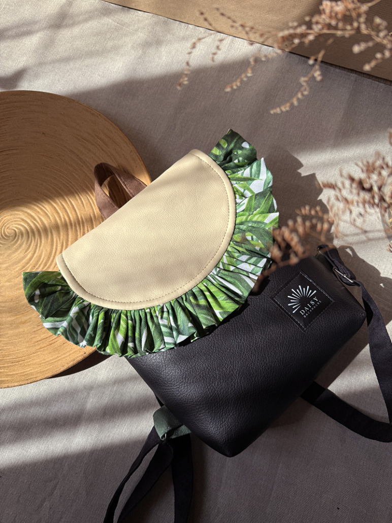 Fabric: main – eco leather, top – eco leather, ruffles – cotton, lining – cotton