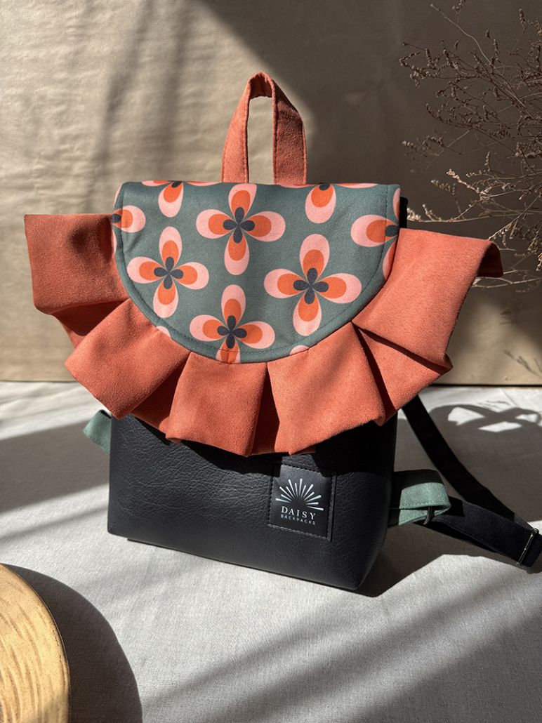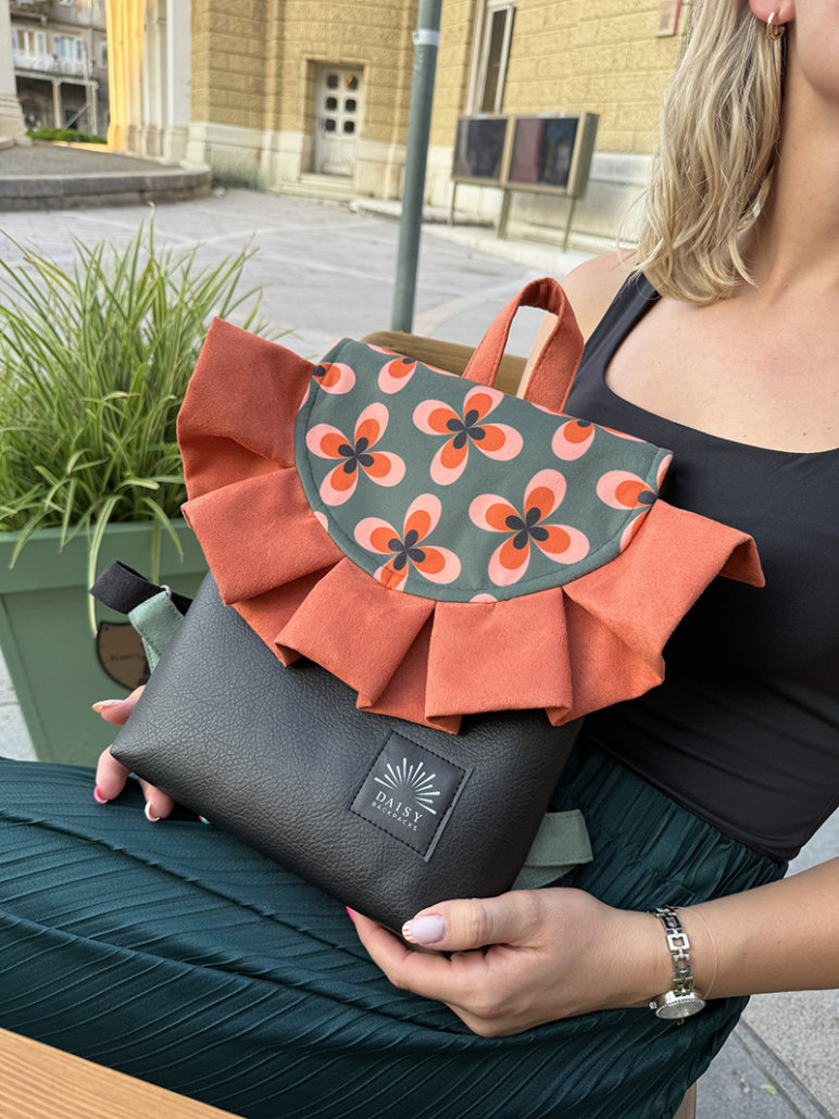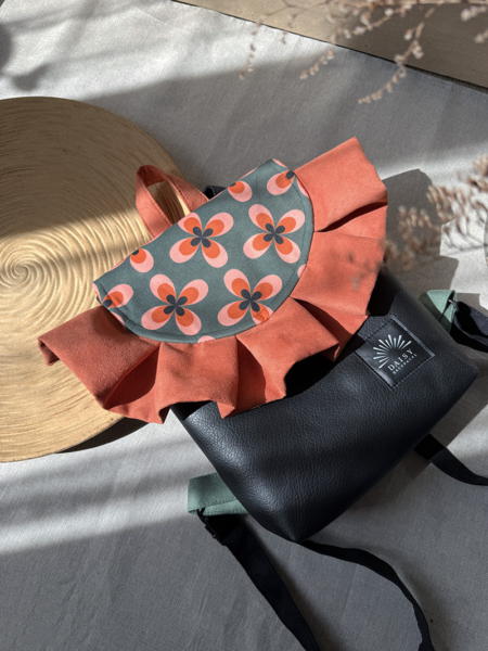 Blacks Ruffle backpack with retro print and terracotta ruffles
